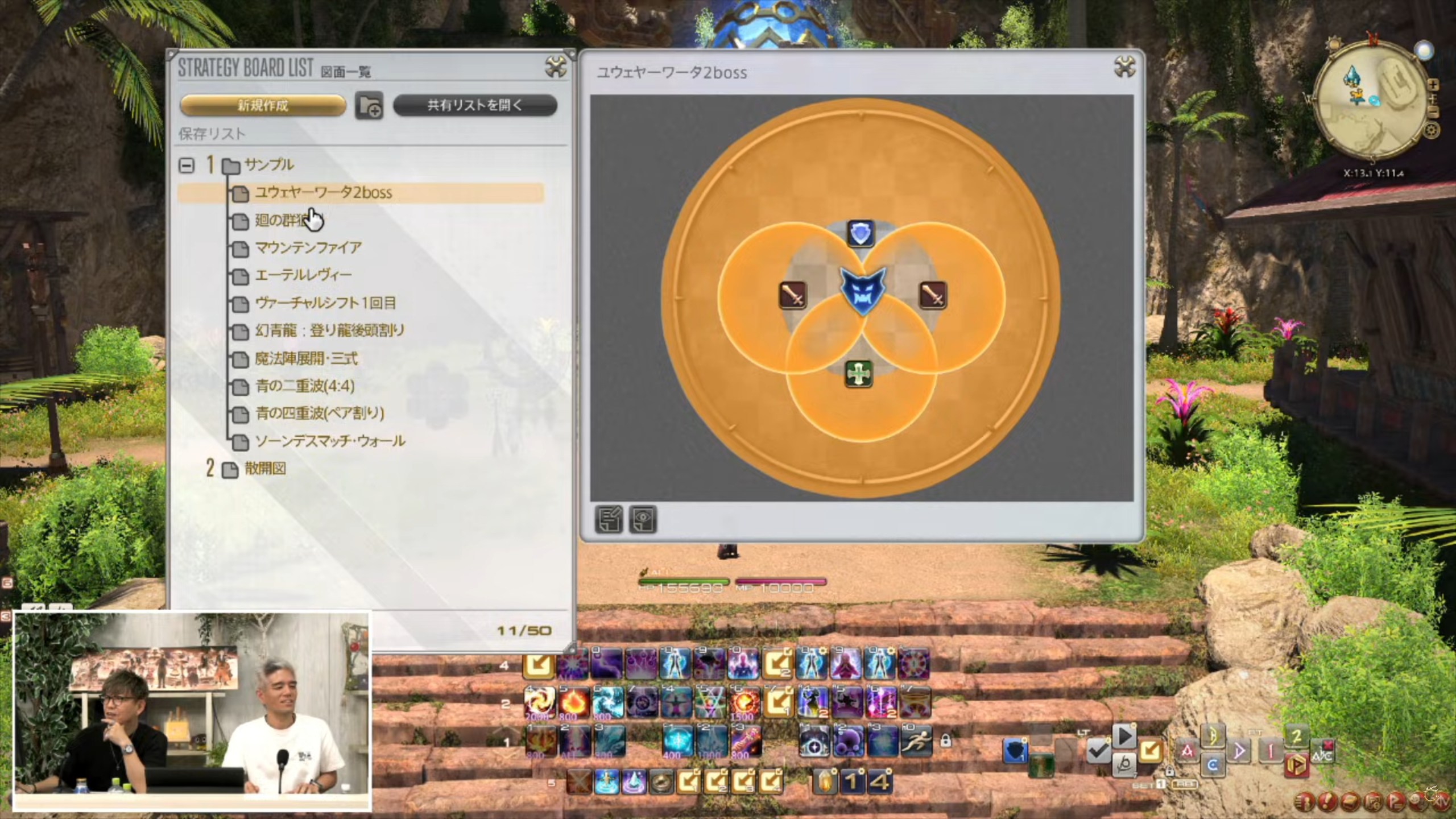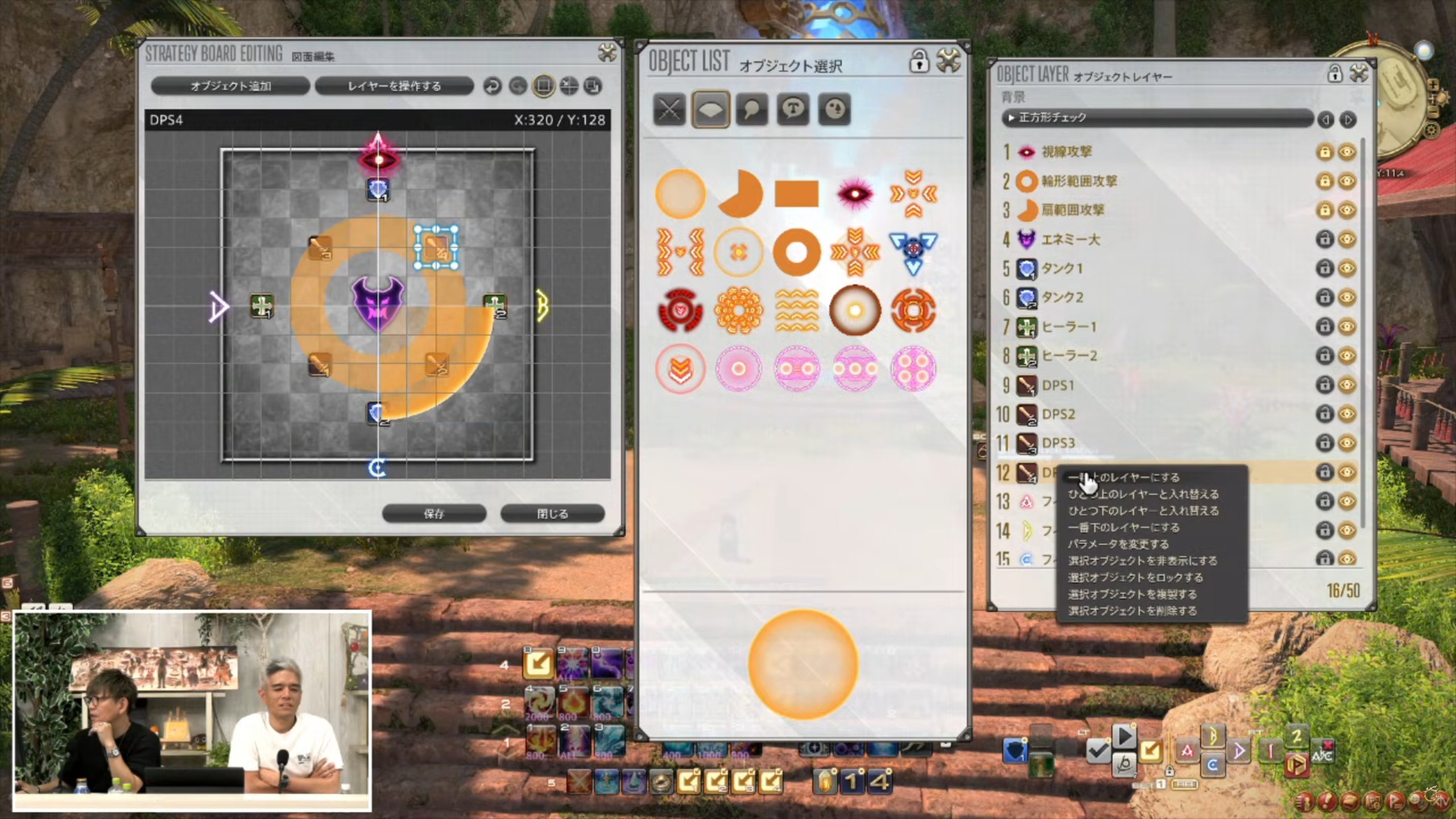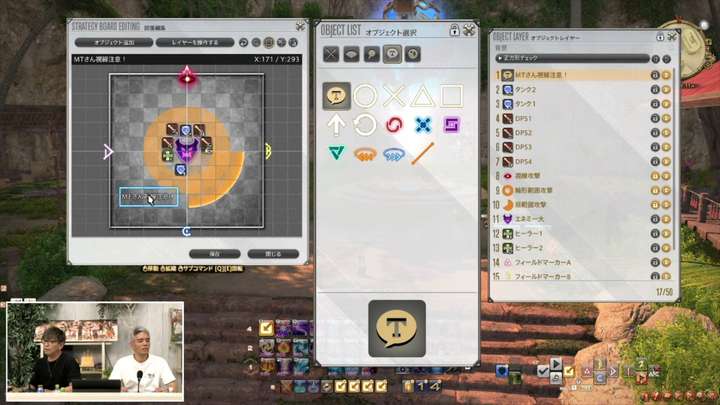 The boards can display mechanics as easily or as complex as you wish them to, even featuring layers to help manage the complexity and visibility of things (e.g. place job markers on a higher layer than the AoE markers).